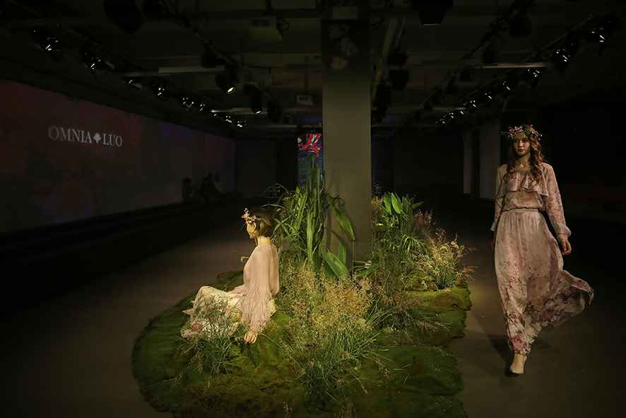现场手碟演奏拉开了欧柏兰奴2019春夏新品发布会的序幕。氤氲的气氛包围着全场,3D高科技全息投影效果,让人身临其境的进入到的花之秘境的世界。